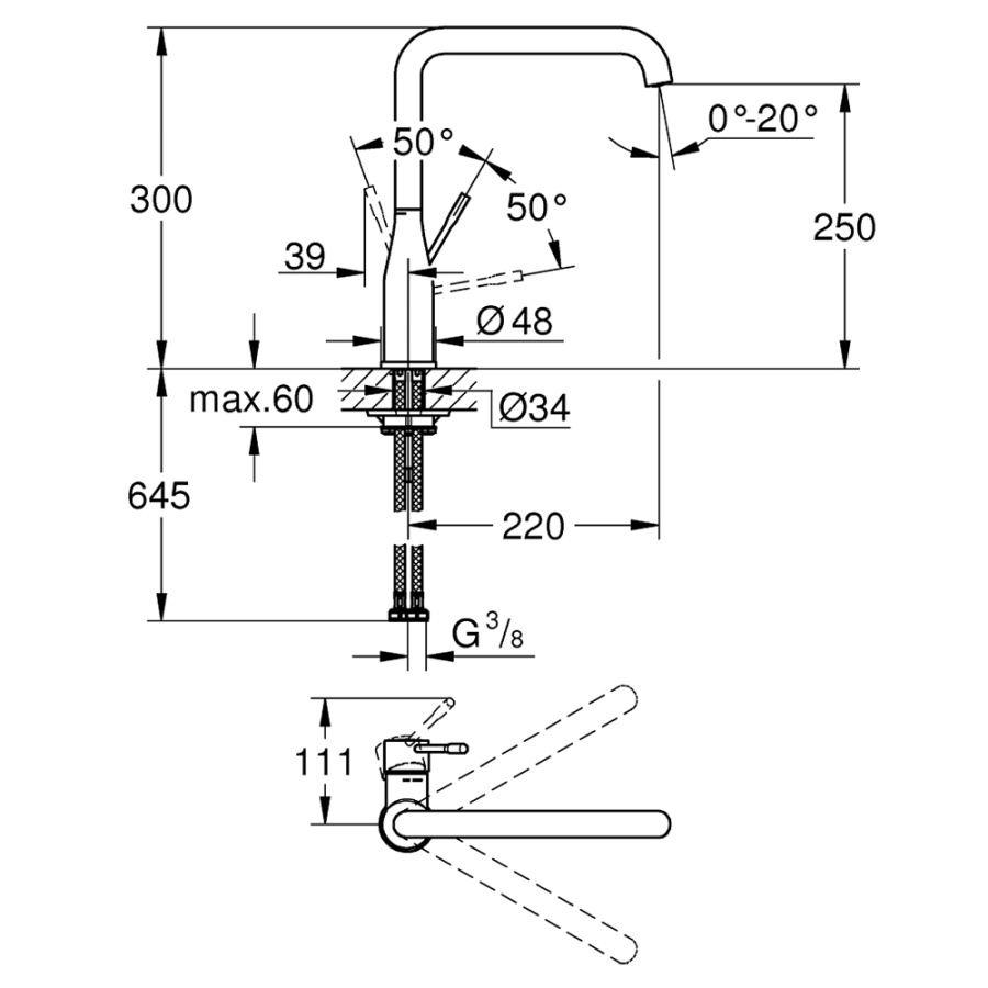 Высота до аэратора (см)