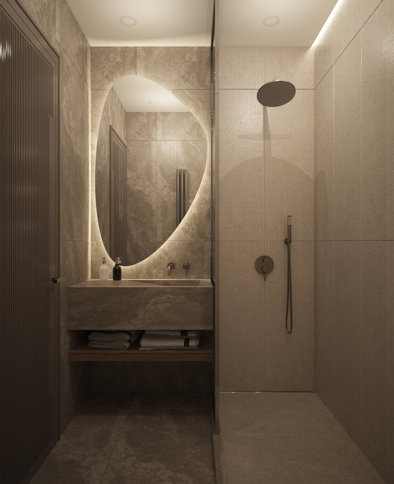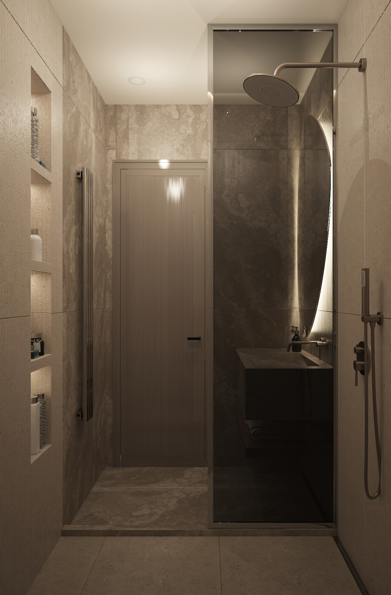 Дизайн-проект в ЖК Любимово 18, небольшая ванная комната в двухкомнатной квартире.