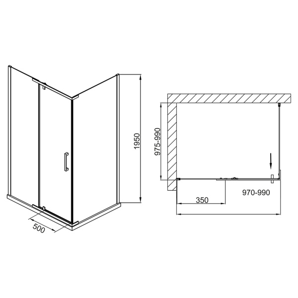 1. Распашные душевые уголки
