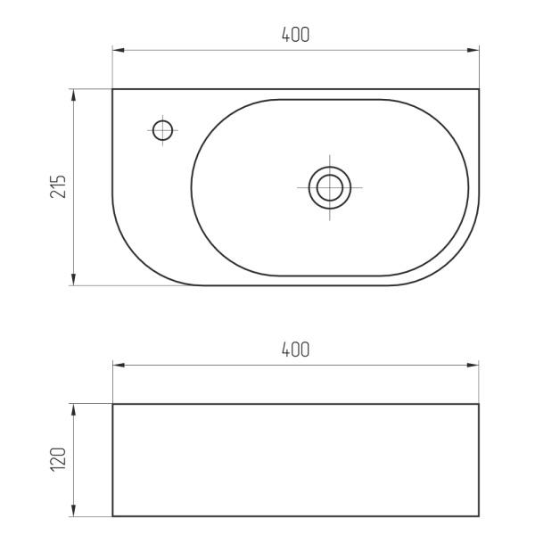 Рукомойник AVS Грэйс 37x25 L, темно-серый матовый с донным клапаном