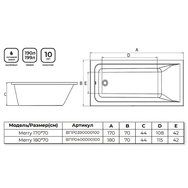 Размеры ванн варьируются от компактных (120-140 см в длину) до больших (более 170 см), что позволяет выбрать модель под любую площадь. В каталоге указаны точные габариты каждой ванны, что упрощает выбор.