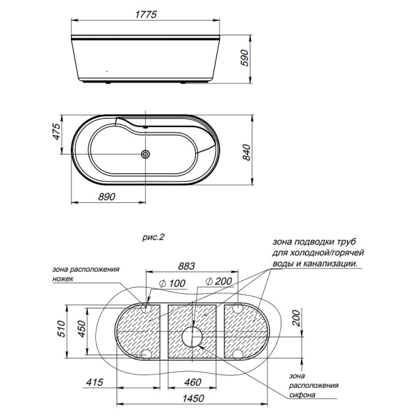Формы и размеры ванн