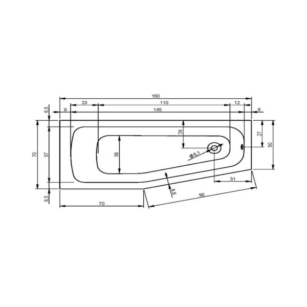 Акриловая ванна Riho Amalfi 160х70 R белая, без ножек